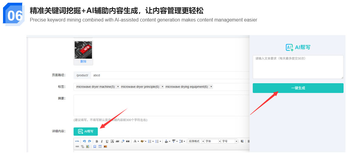 Precise keyword mining combined with Al-assisted content generation makes content management easler