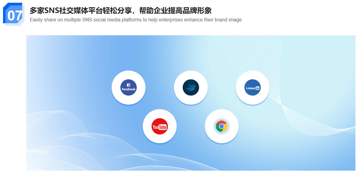 Easily share on multiple SNS social media platfomms to help enterprises enhance their brand image