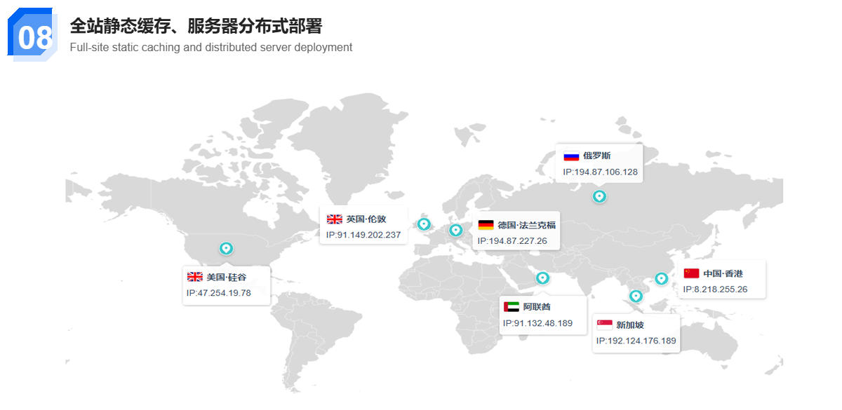 覆蓋200多個(gè)國家和地區(qū),滿足更多小語種訴求按瀏覽器語言跳轉(zhuǎn)網(wǎng)站支持多域名綁定,一鍵翻譯